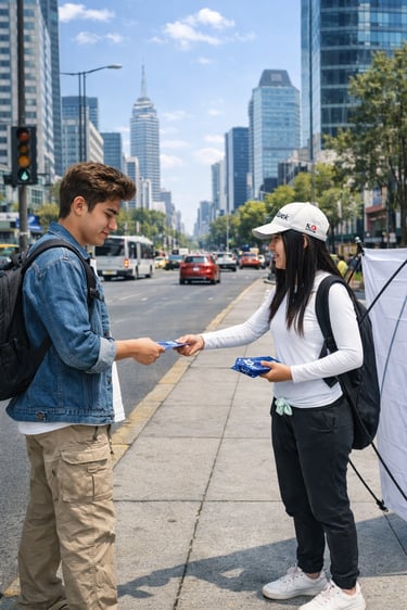Promoción directa, dinámica y visible para campañas de alto flujo, ideal para comunicar mensajes de forma clara, elegante y con presencia humana estratégica.