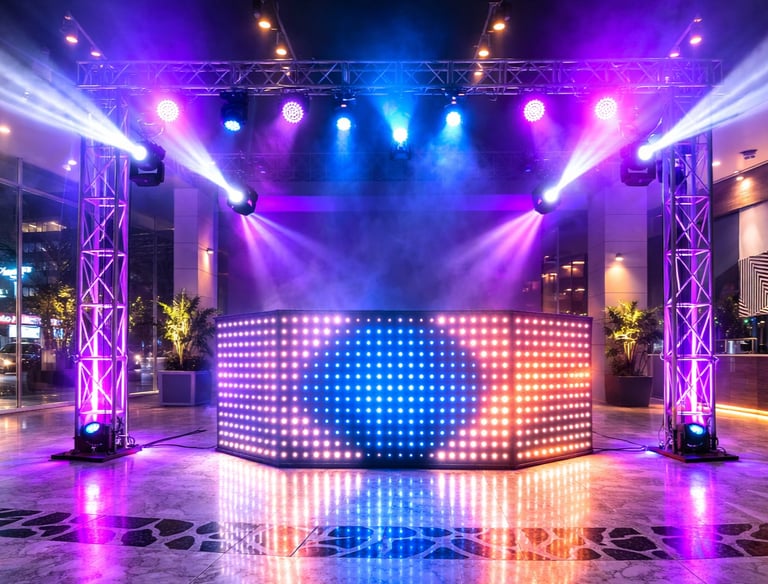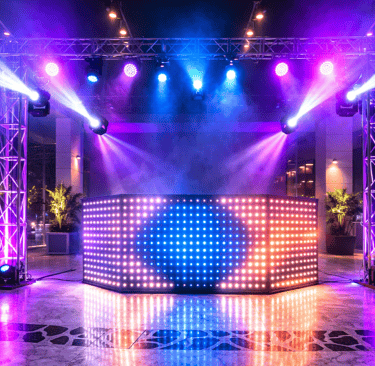 Diseñamos ambientes visuales con iluminación estratégica para resaltar escenarios, generar atmósferas memorables y elevar la presencia de cada evento con una ejecución técnica y estética de alto nivel.
