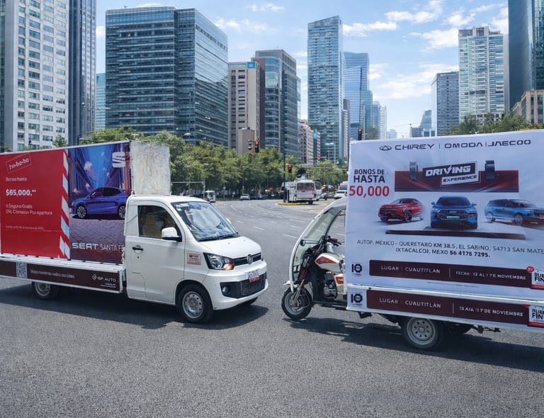 Publicidad en movimiento con alto impacto visual para posicionar tu marca en calles, eventos, lanzamientos y campañas urbanas con presencia elegante y memorable.